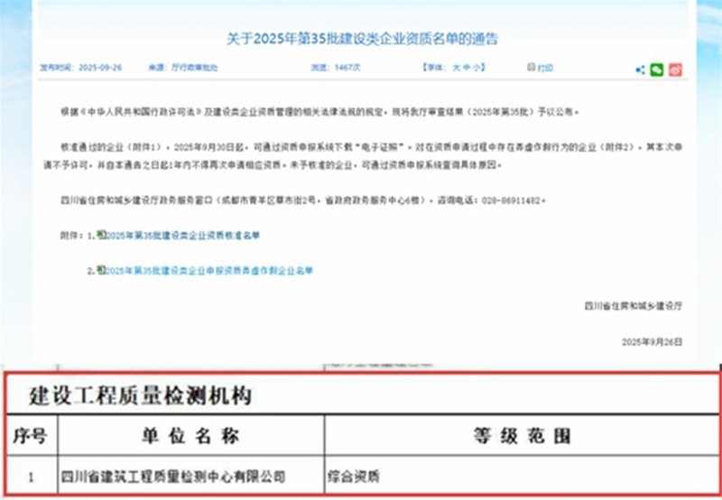建科院獲全省首個“建設(shè)工程質(zhì)量綜合檢測資質(zhì)” 2025-09-30